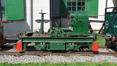 Lister Railtruck number 6299 was delivered new to John Board & Co Ltd, Dunball Portland cement and lime works near Bridgwater, Somerset in 1935. Following closure of the narrow gauge system in 1954 it was sold to Trollope & Colls Ltd, Howick Whinstone Quarry, Northumberland. It saw very little use there and languished in the very exposed quarry until rescued for preservation by owner Peter Nicholson in early 1968. Having been stored in various locations it was restored to working order in 2017 by a Trust member and is now on long term loan to the museum. It has a 600cc single cylinder JAP petrol engine and is started by hand with a winding handle.